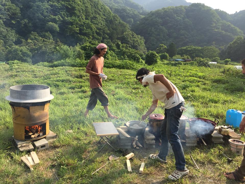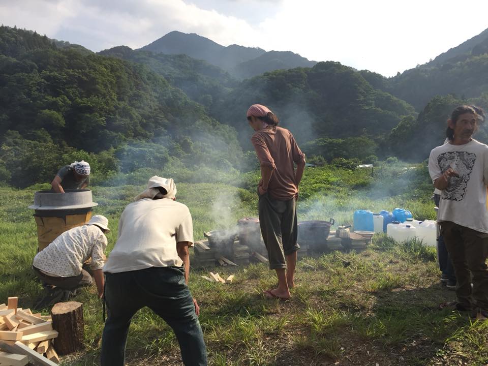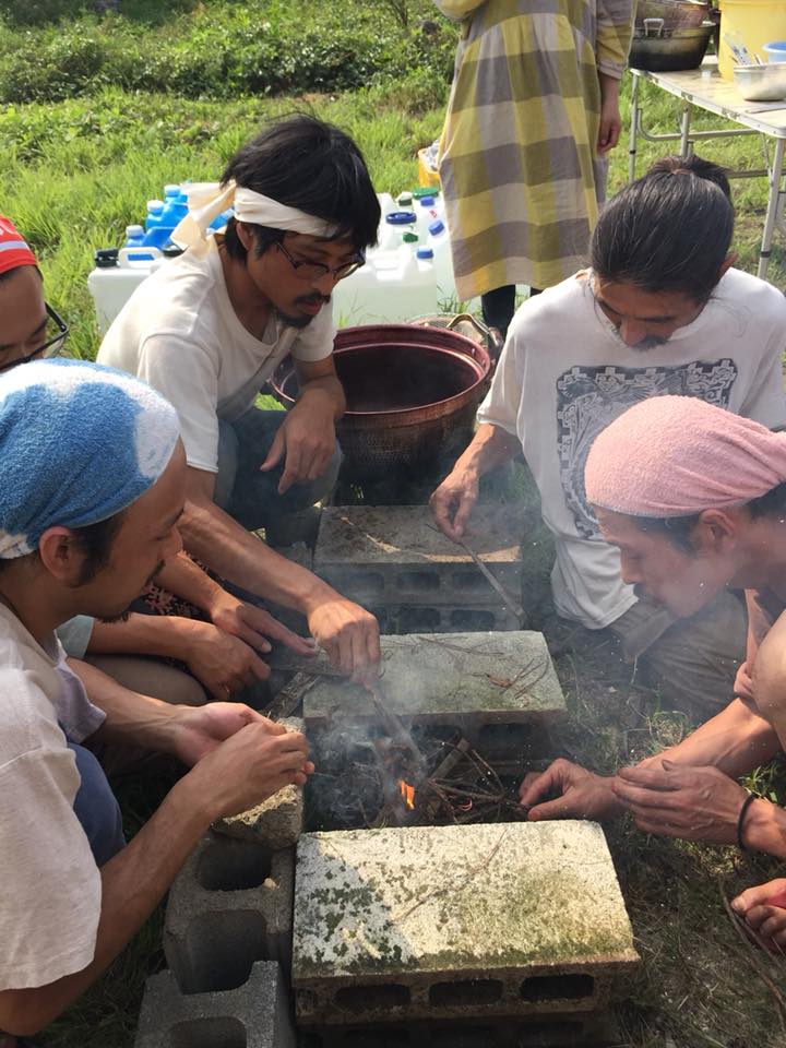2018年夏至に行ったウェディング塩炊き味噌づくりキャンプ。全国の友人が海水を持って集まってくれました。2泊3日で塩を炊いて、皆で糀を起こして、引き出物として皆で作った味噌を配りました。共同作業をしながらの共同生活で、知らない人同士が旧知の仲のようになっていきました。